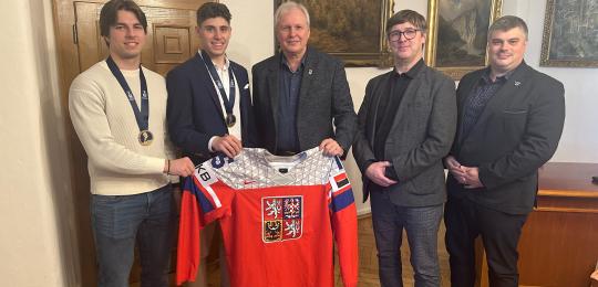 Vedení města Chomutova slavnostně pogratulovalo hokejistům k získání bronzu na Mistrovství světa juniorů v ledním hokeji 2025
